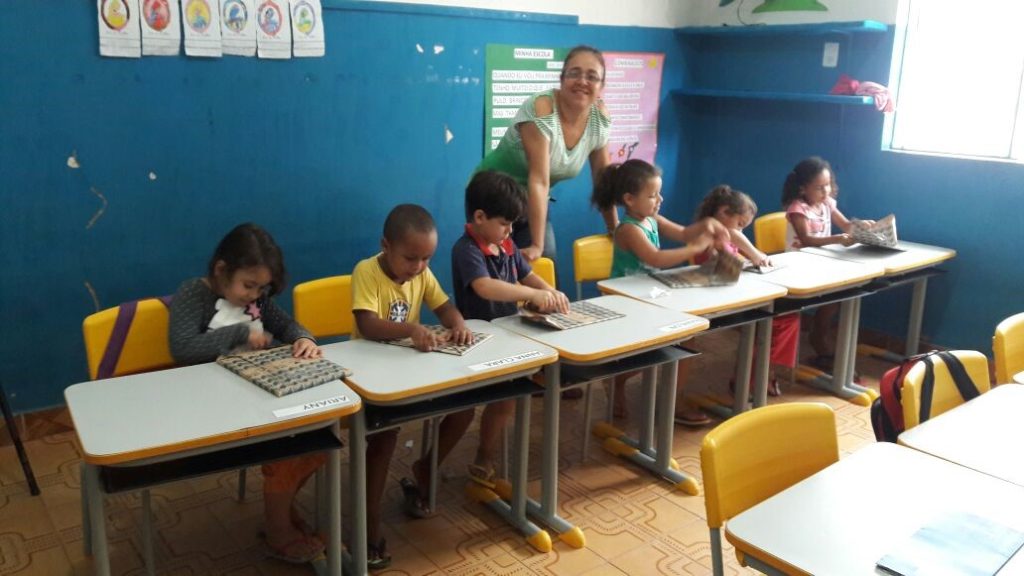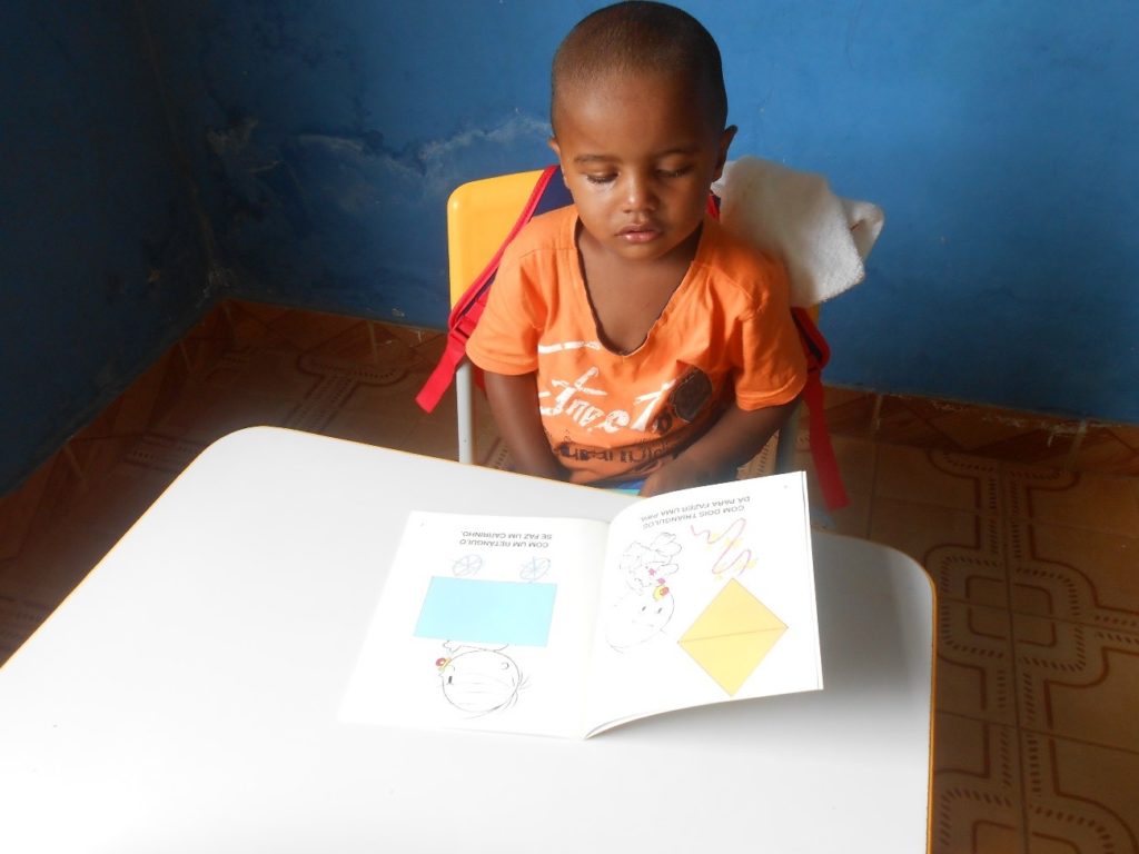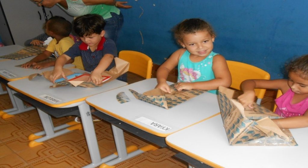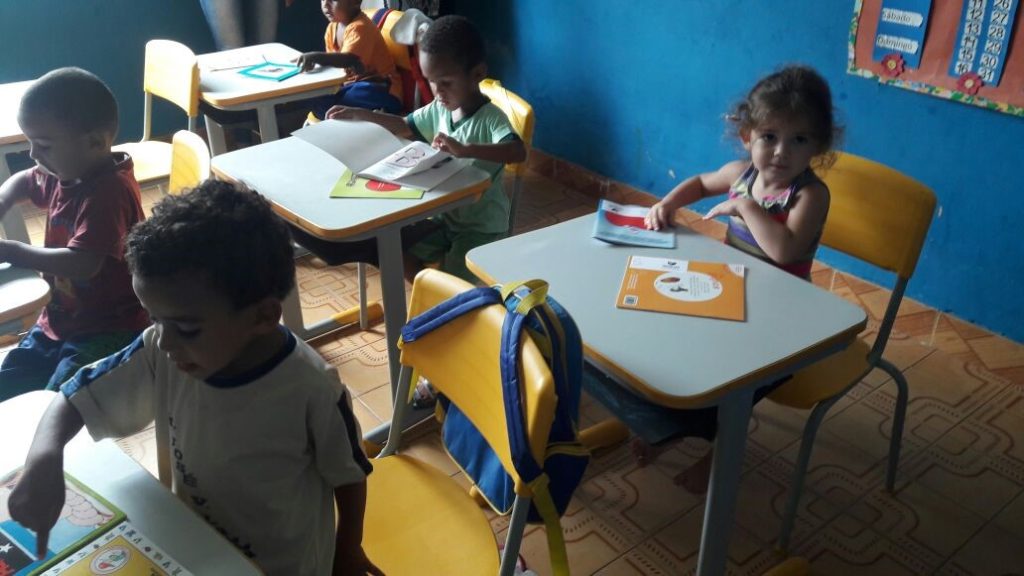 Quando fizemos a entrega dos livros, a unidade atendia 25 alunos em um espaço pequeno, organizado e aconchegante, com duas salas de aula, um cantinho de leitura, dois sanitários, uma cozinha, um refeitório e espaço para recreação. O atendimento dos alunos é realizado em tempo integral.