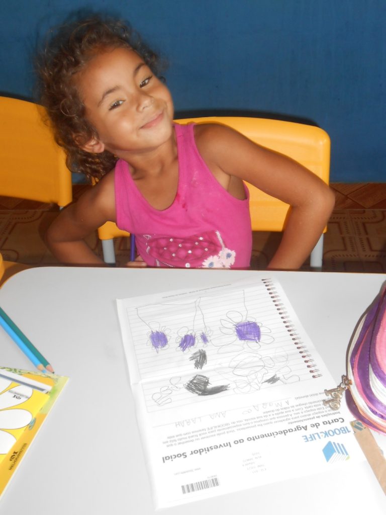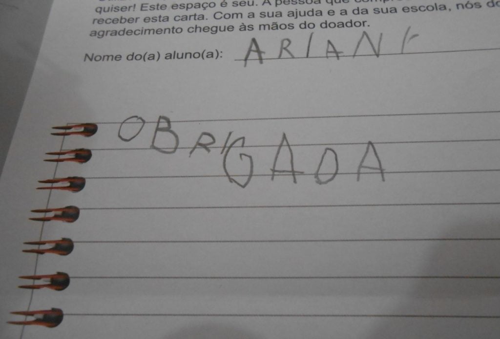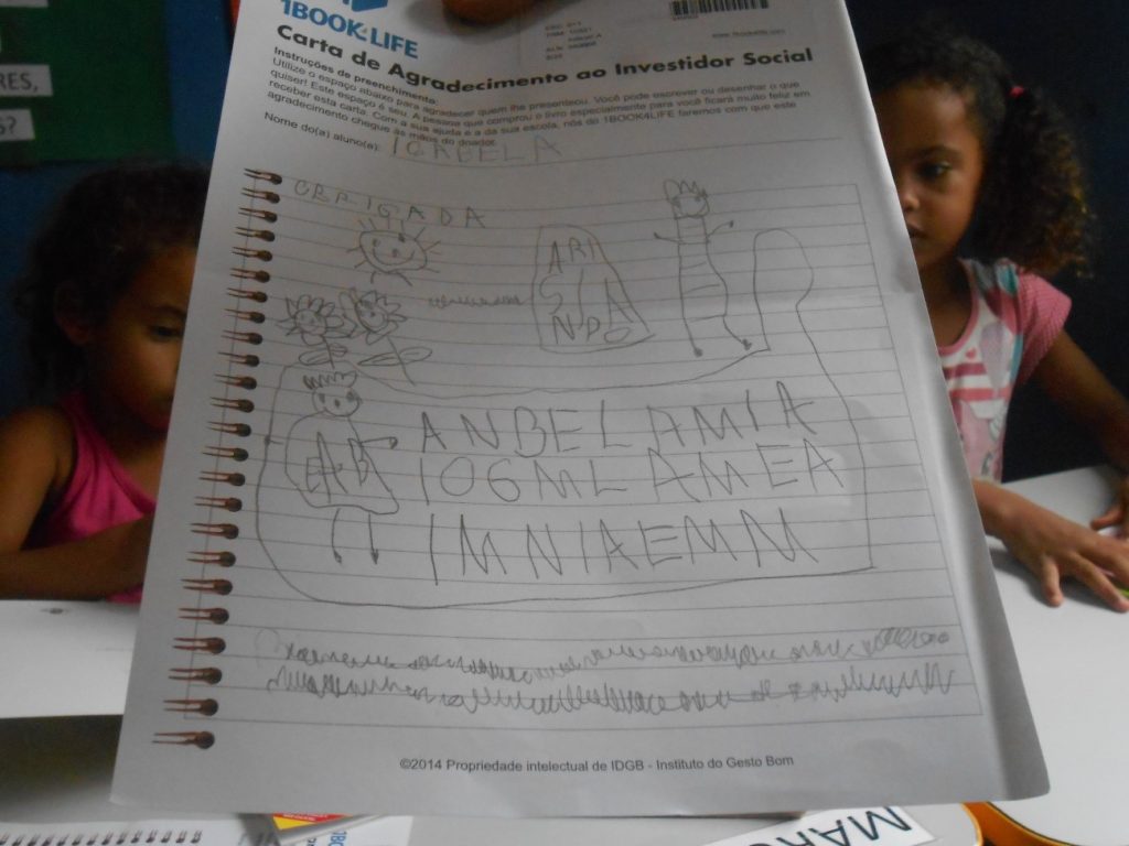 Ao receber o livro em sala de aula, alguns alunos preenchem uma Carta de Agradecimento ao Investidor Social, com mensagens, desenho e/ou imagens que demonstrem a sua gratidão pelo presente recebido.