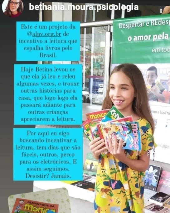 Esse depoimento também é maravilhoso! A Bethania falando da experiência de leitura da filha e que tem ensinado ela a repassar o que pega na banca.