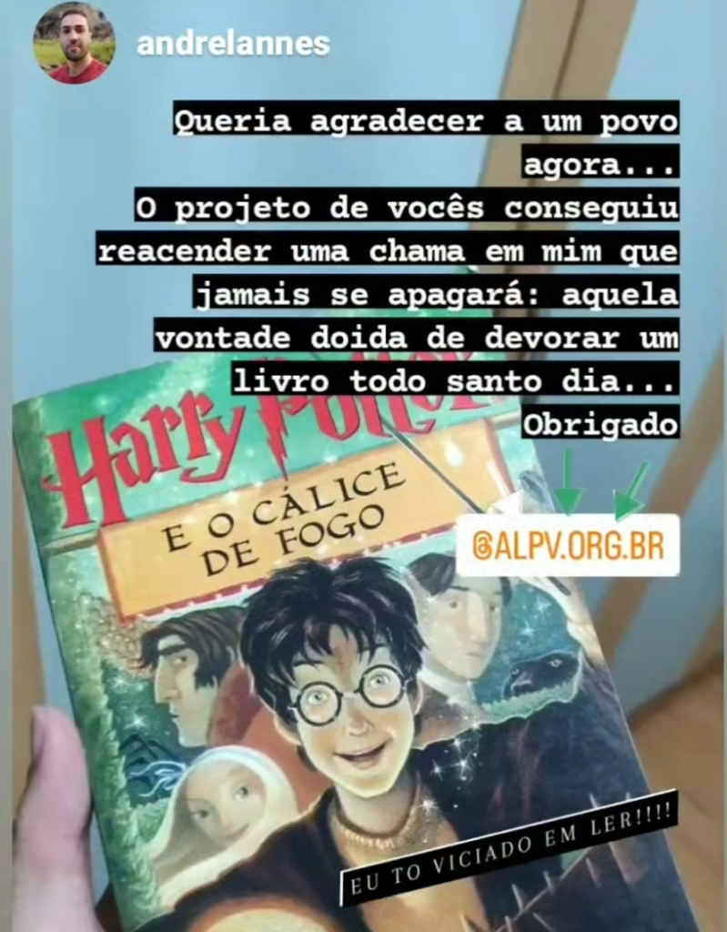 Esse depoimento foi feito pelo André, que já pegou alguns livros pelo nosso projeto, olha que lindo o que disse: