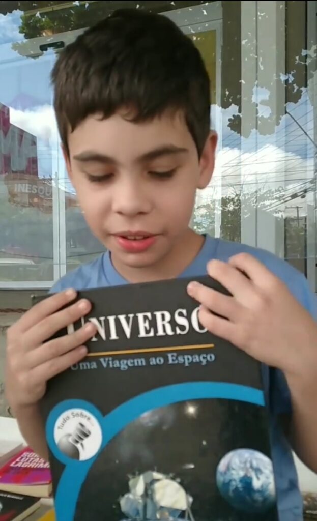 “Peguei outro livro do espaço sideral porque eu sou muito fã desses lugares e quando for no futuro eu tenho certeza de que vou viajar pra lá, até falo com os meus amigos que a gente vai. Eu tô muito ansioso (para ler o livro) porque eu já gosto do espaço sideral, todos os livros que eu pego são gibis e outras coisas, aí eu vi um de espaço sideral, gostei tanto que eu não paro de ler(...) leio e releio toda santa hora e esse aqui tem todos esses capítulos aqui que eu vou ler!”Estevão