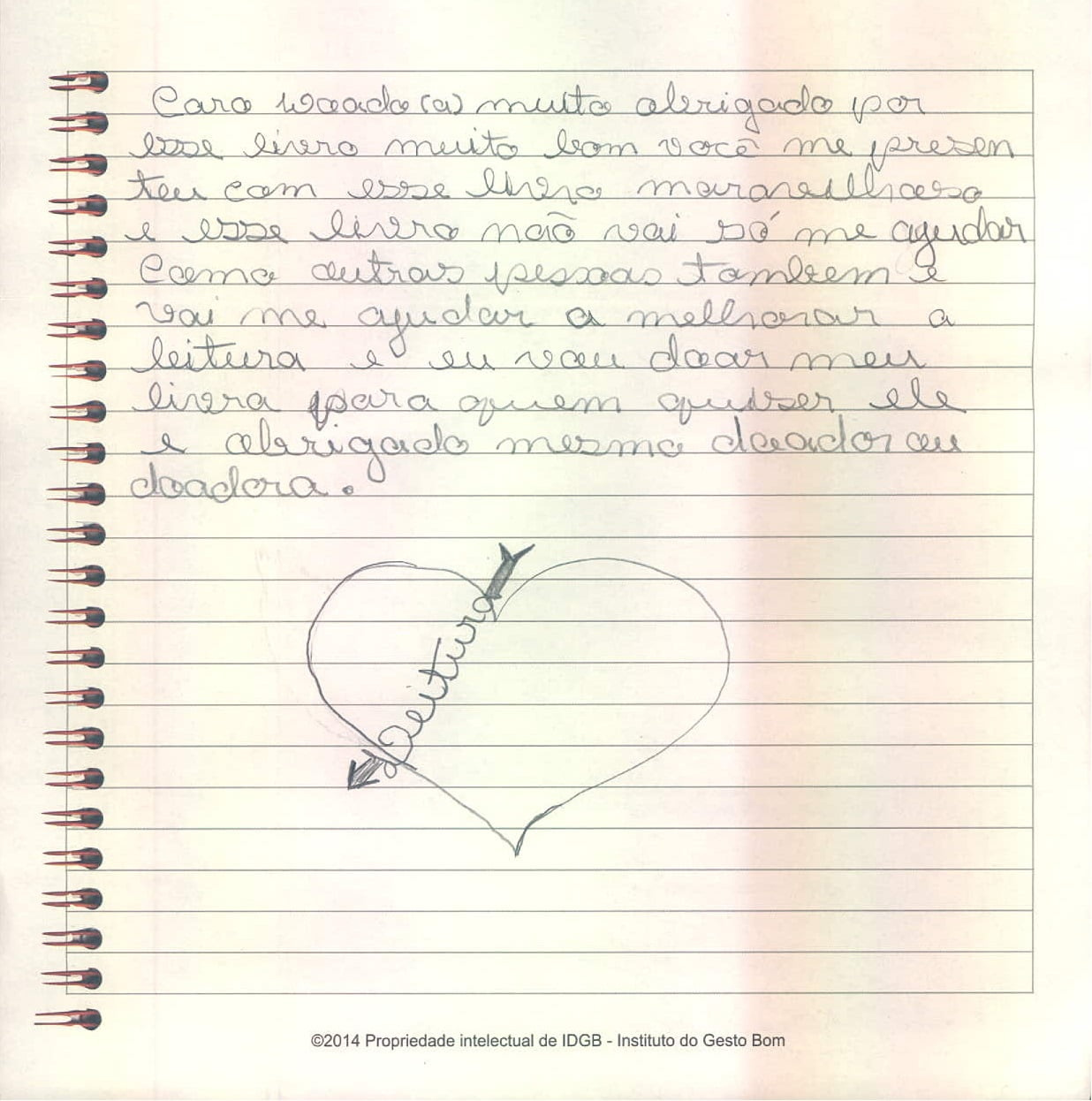 Nestas cartas alguns alunos beneficiados pelo 1BOOK4LIFE relatam a troca de livros entre amigos e familiares.