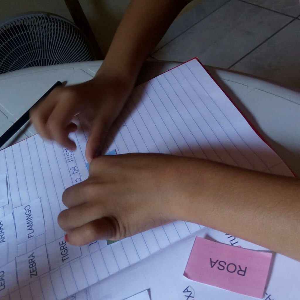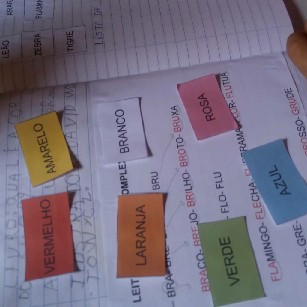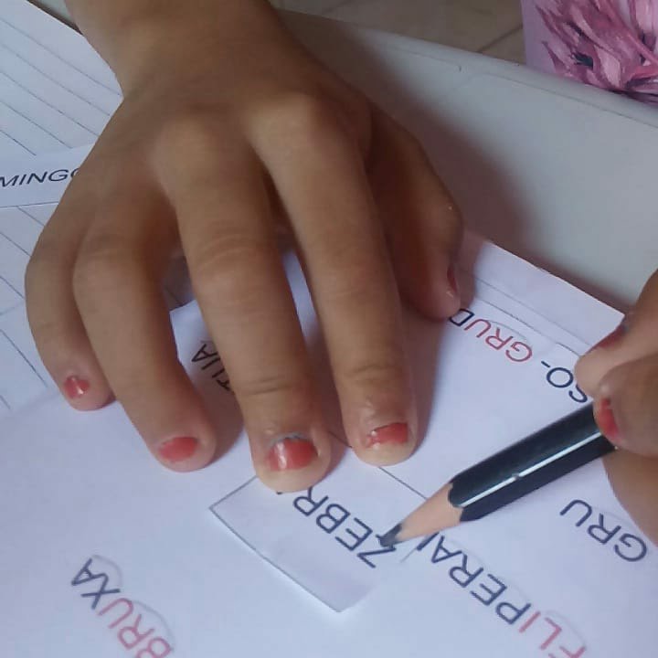 - Trabalhar a separação de sílabas de forma didática, usando as palavras com sílabas complexas citadas no livro, com: Elefante, Tigre, Zebra, Flamingo e etc.